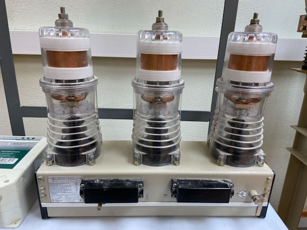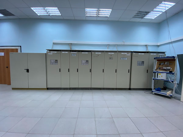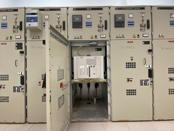 В лаборатории установлено комплектное распределительное устройство КРУ-10 кВ. На лабораторных работах студенты изучают конструкцию, системы управления и защиты, а также особенности эксплуатации распределительных устройств. В каждой ячейке КРУ-10 кВ установлены разные микропроцессорные терминалы управления и защиты. Отличительной особенностью КРУ является возможность выкатывания выключателя для проведения ремонтных и профилактических работ, выполнив эти операции на лабораторной работе, студенты готовы применять полученные навыки на реальном объекте.